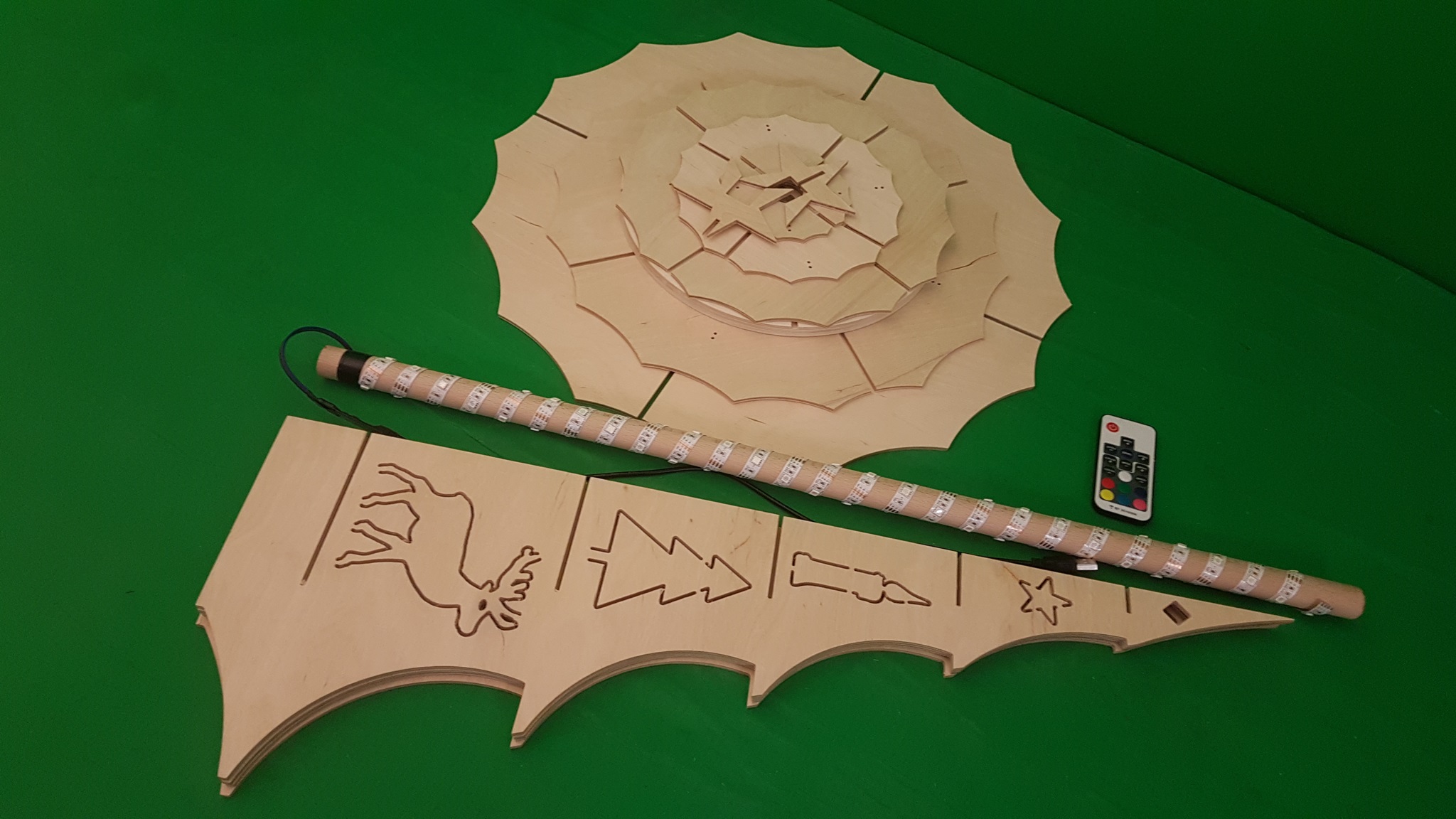 Alle Teile, inklusive optional beleuchtetes LED Innenteil mit Fernbedienung.