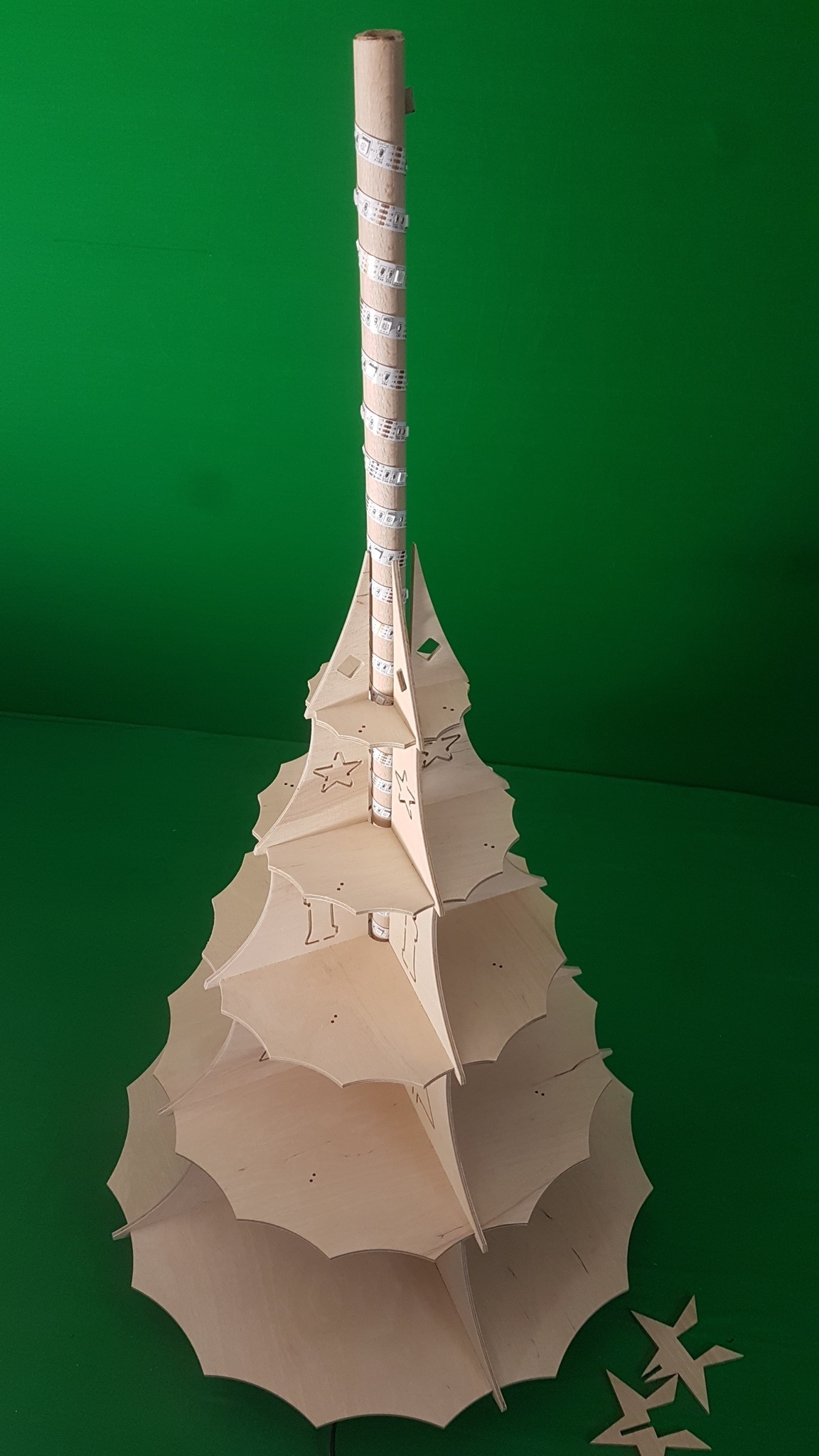 Stern aufsetzen, optionale Beleuchtung einschalten und nach Bedarf dekorieren.