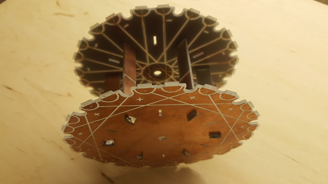Für das nachträgliche Auswuchten sind M4 Gewindebohrungen in die Stirnseiten gebohrt und Acrylschrauben M4 x 12 eingedreht.