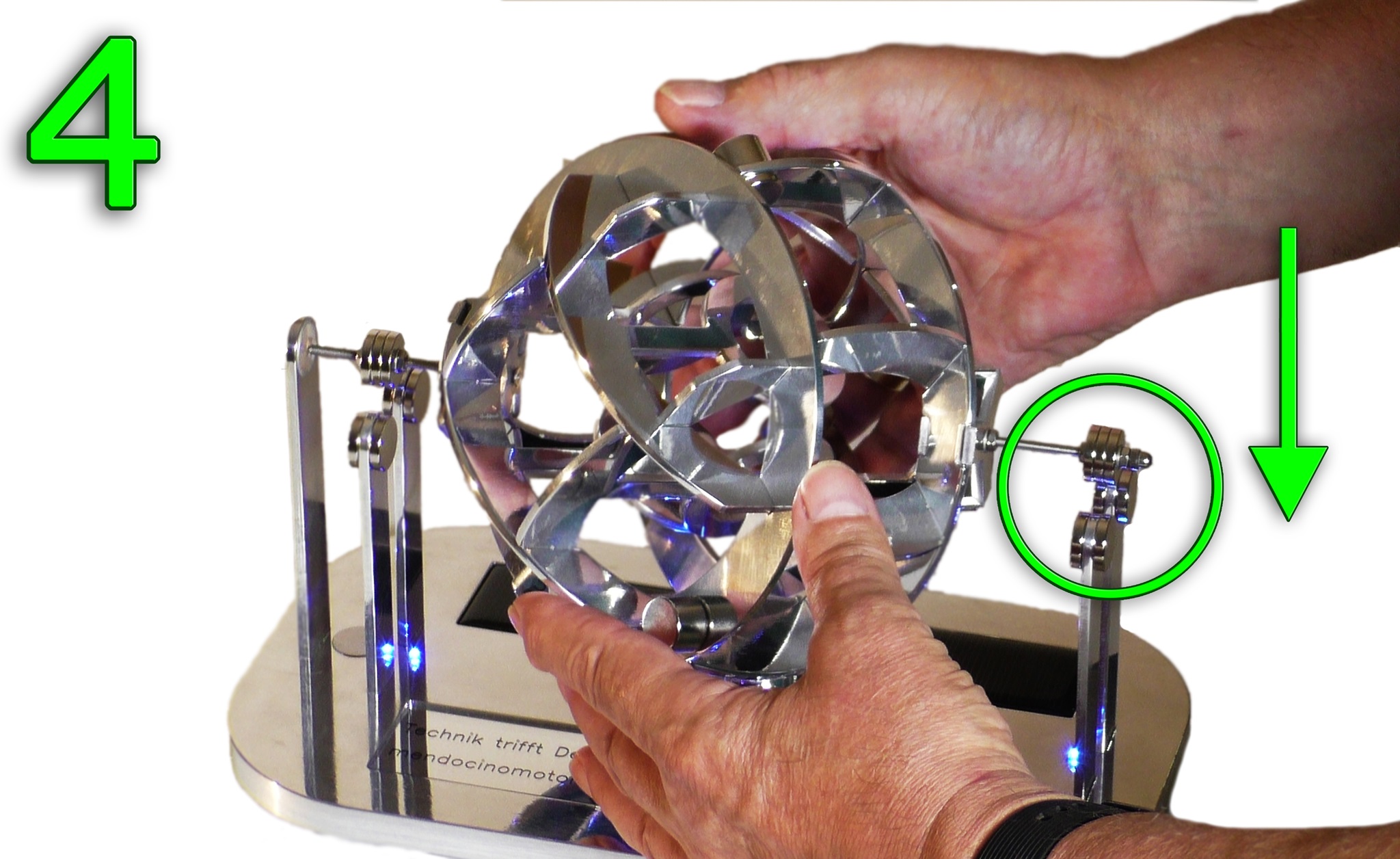 Den Rotor langsam in die waagerechte Schwebeposition bringen und vorsichtig loslassen.