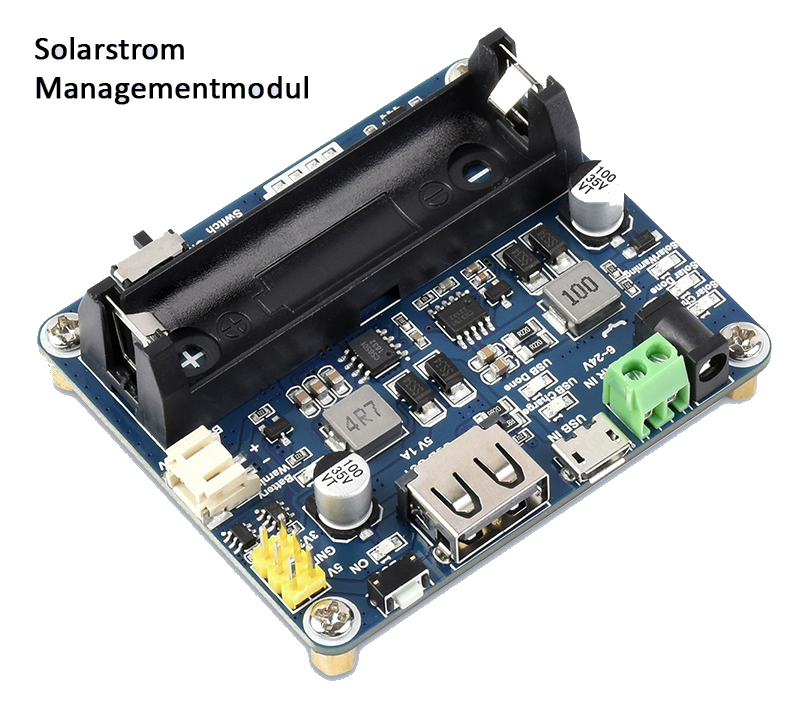 Die Platine ist für den Betrieb an einem stabilisierten 5‑V‑System ausgelegt und damit perfekt kompatibel mit dem Solar‑ und Akkusystem der SolarSphere.
